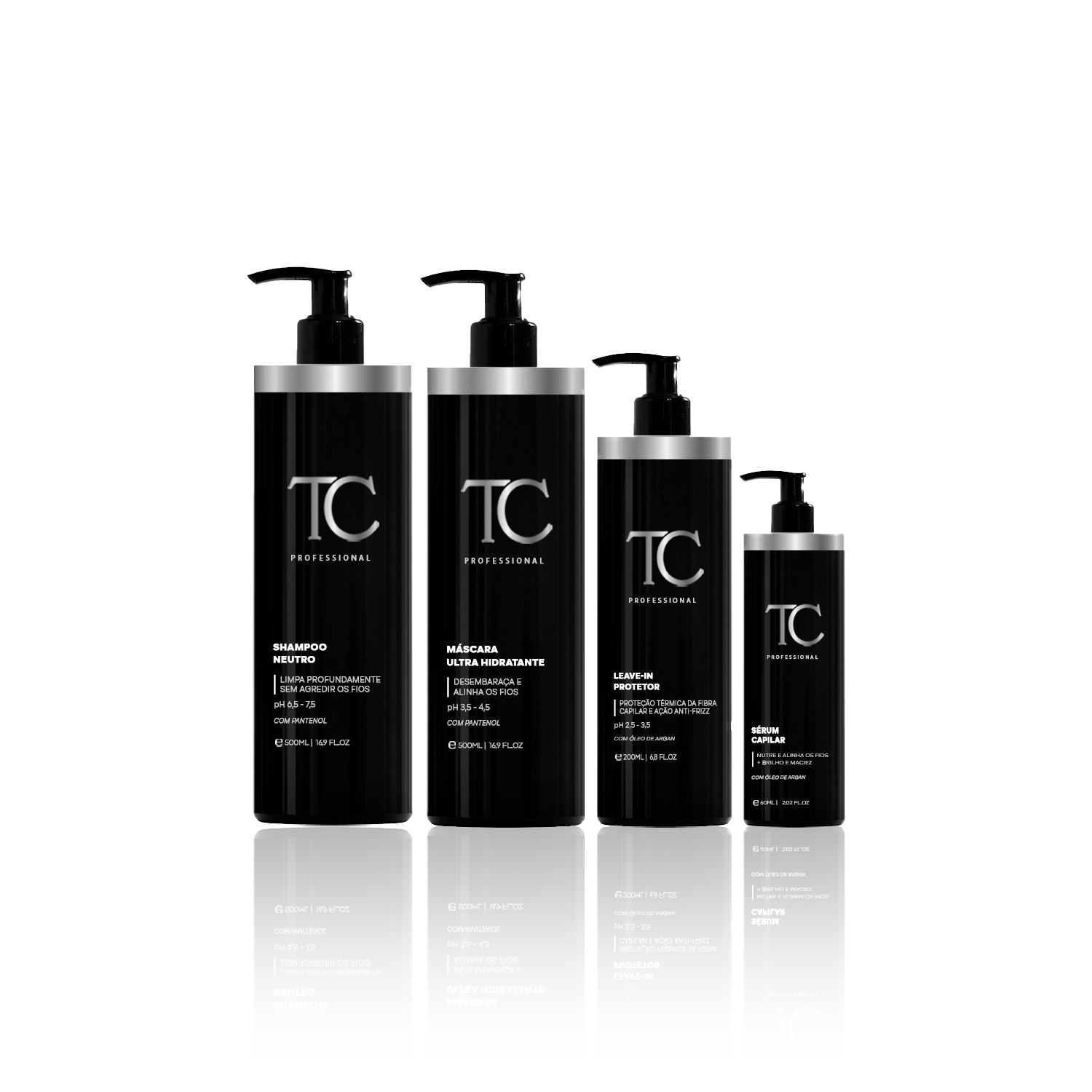 O Kit Master TC Professional reúne os produtos essenciais para um cuidado MEGA HAIR completo: Shampoo, Máscara, Leave-In e Sérum. Combinando limpeza profunda, hidratação intensa, proteção térmica e brilho radiante, ele transforma seus cabelos em casa ou no salão, garantindo resultados profissionais.